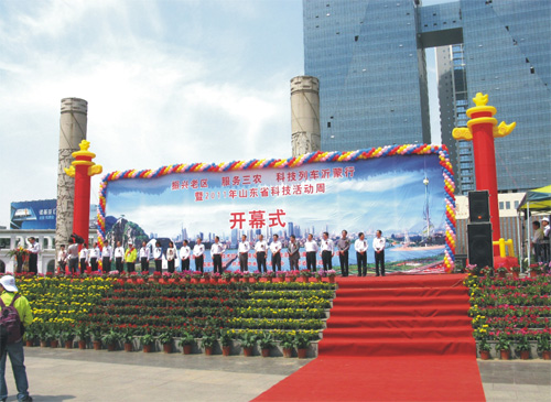 5月14日,“振興老區(qū) 服務(wù)三農(nóng) 科技列車沂蒙行”活動(dòng)在臨沂市舉行。山東省委常委、副省長孫偉、省政協(xié)副主席李德強(qiáng)出席開幕式。科技部黨組成員、紀(jì)檢組組長郭向遠(yuǎn)出席開幕式,科技部等部委有關(guān)領(lǐng)導(dǎo)、科技列車專家服務(wù)團(tuán)全體成員,臨沂市副市長左沛廷等有關(guān)領(lǐng)導(dǎo)以及社會(huì)各界代表也參加了開幕式。